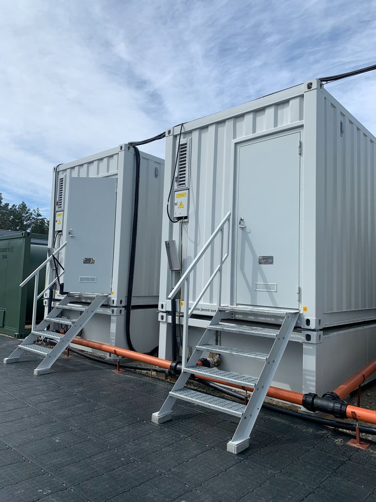 💧 Konteineriai gali būti tiekiami su nuotekų talpomis, pilnai įrengta nerūdijančio plieno santechnika, šildymo ir vėsinimo sistemomis bei karšto vandens tiekimu.